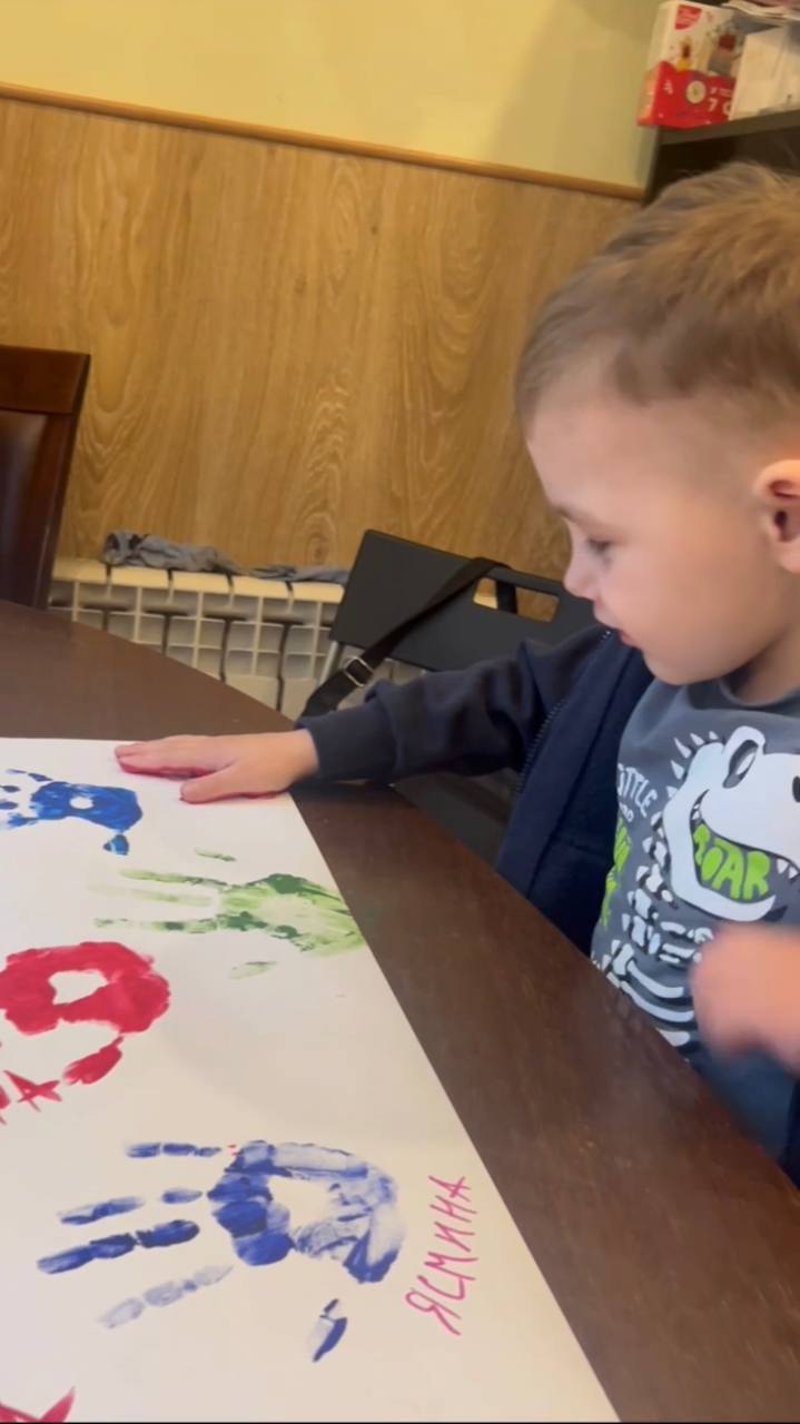 Ребята сразу же сделали газету-шедевр вместе с младшей группой. Такое количество отпечатков ладошек, пускай и не совсем ровных, но от чистого сердца!
